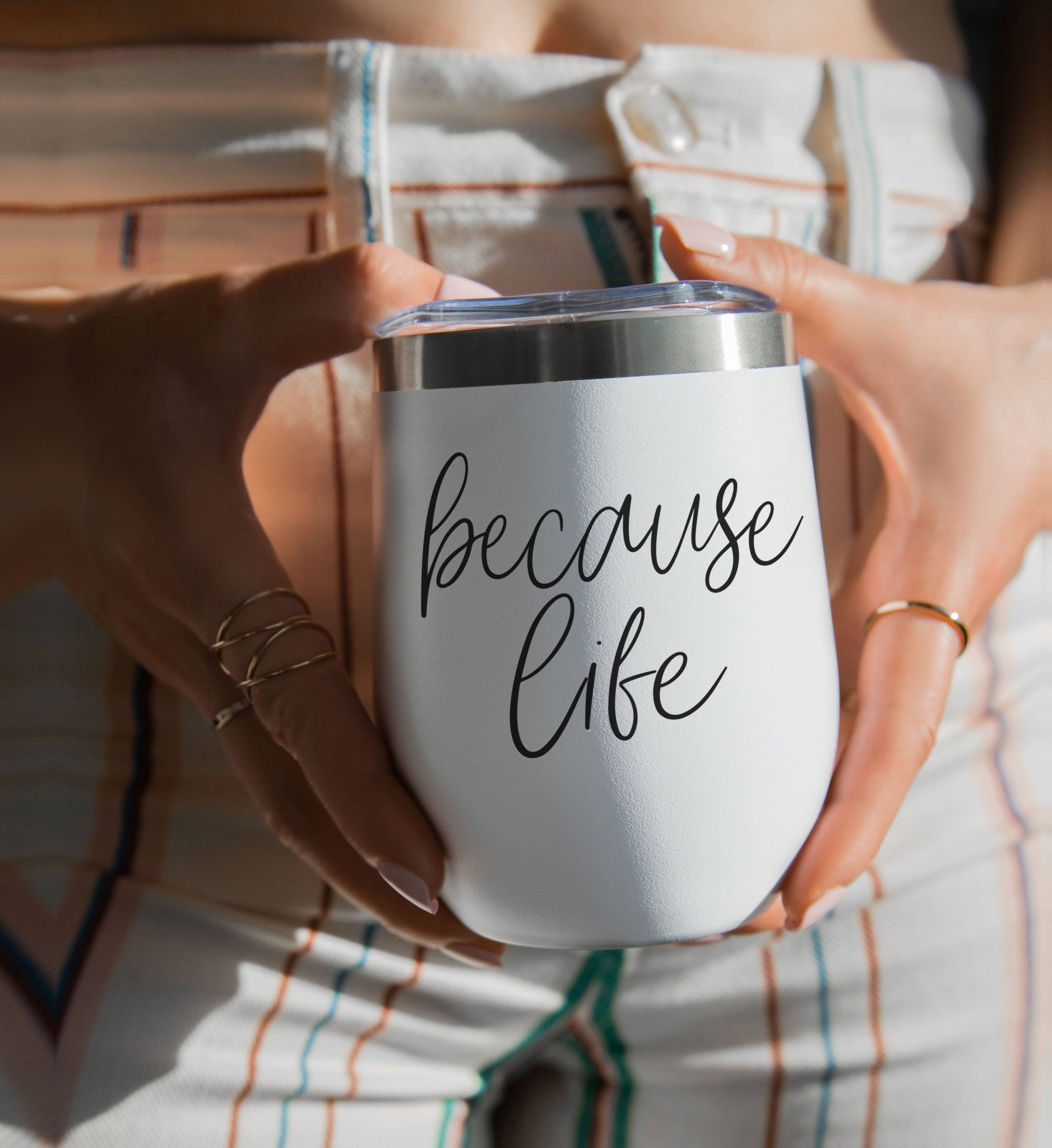 Introducing the Stainless Steel Wine Tumbler with Lid, because Life happens, and sometimes you just need wine to deal with it! Pristine stainless steel, this tumbler is your go-to companion for navigating the unpredictable twists and turns of Life.