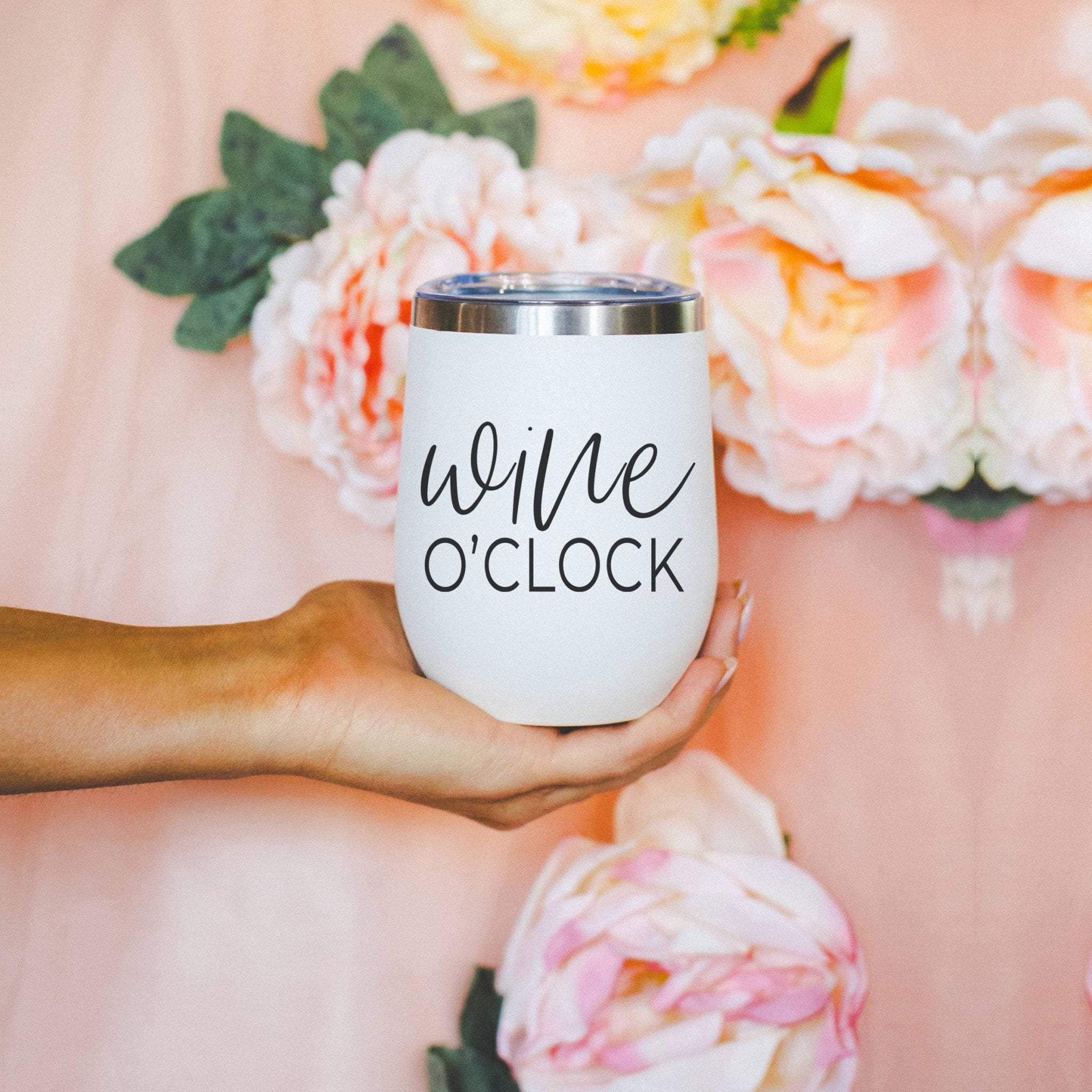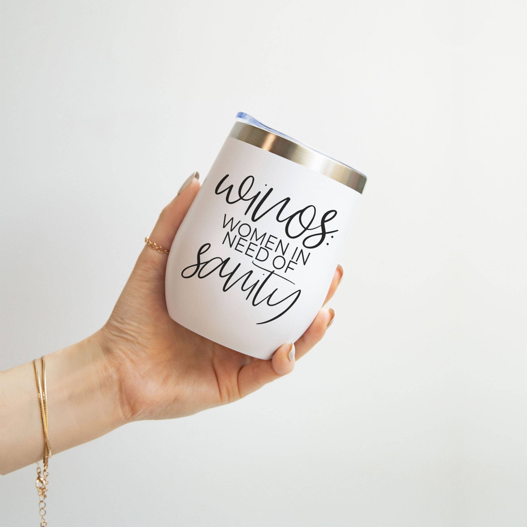 Wine Tumbler White With Lid, WINOS, Funny Gifts for Women