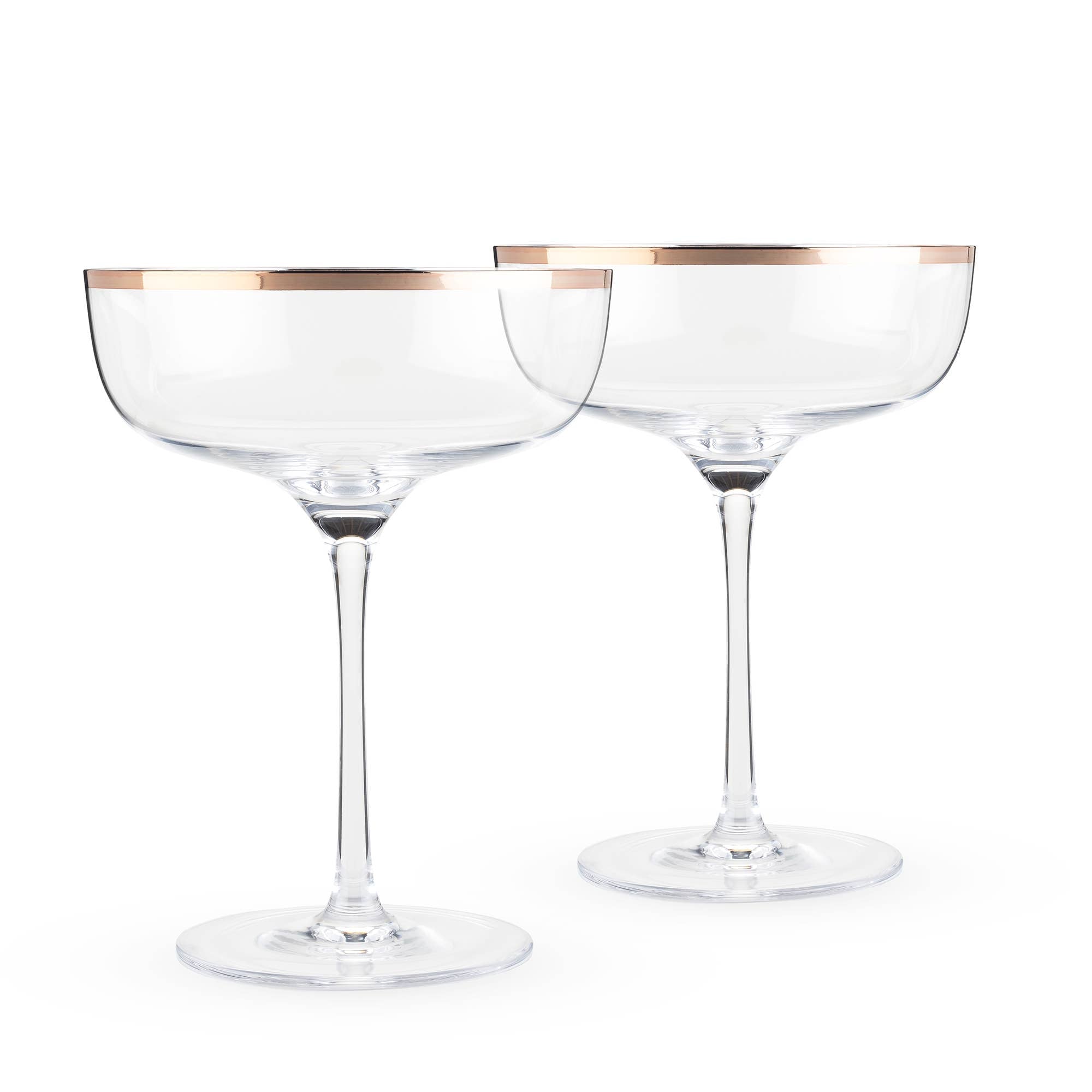 Set of 2 Holds 10 ounces Crafted from lead-free crystal Electroplated copper rim Hand wash recommended Twine’s collections emphasize timeless elegance, natural materials, and a nostalgic sense of quality.