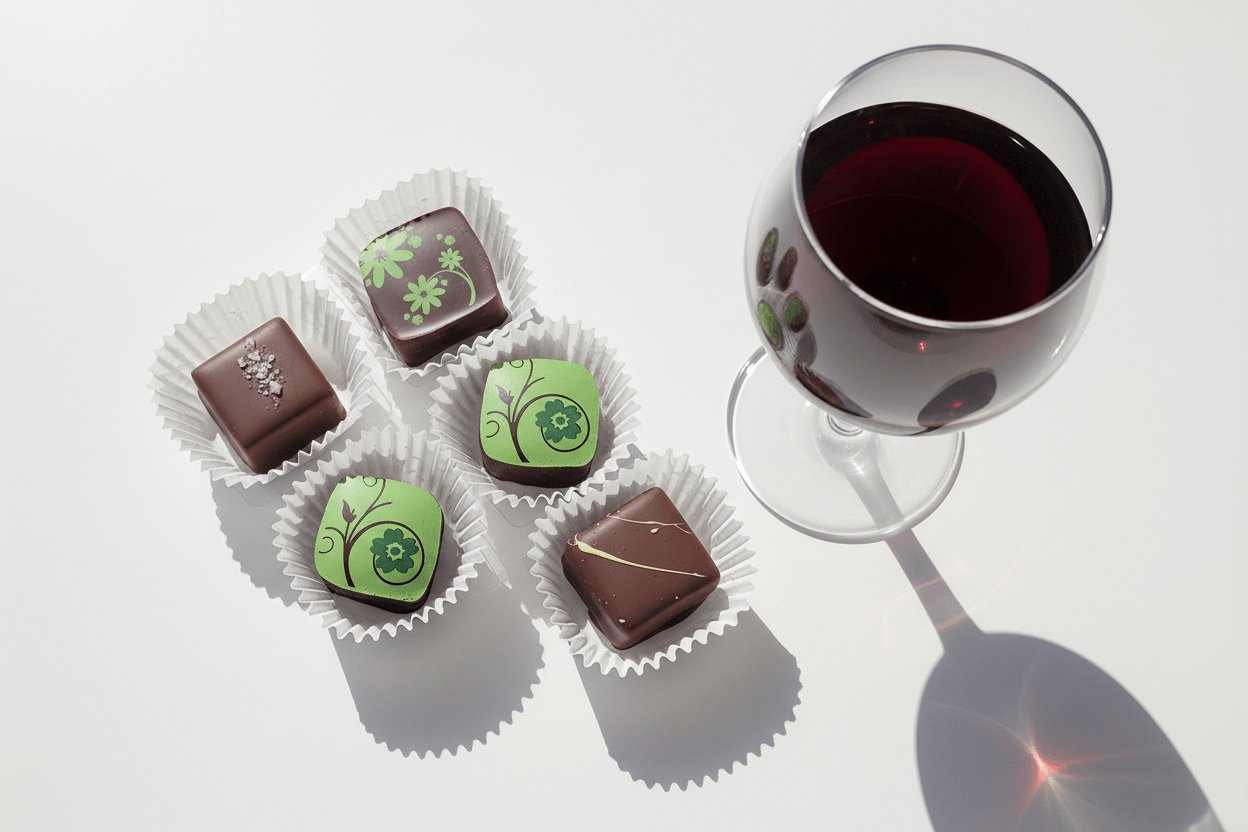 Four premium chocolates hand-selected to complement your wines—explore sweet and savory pairings—an indulgent addition to elevate your tasting experience.