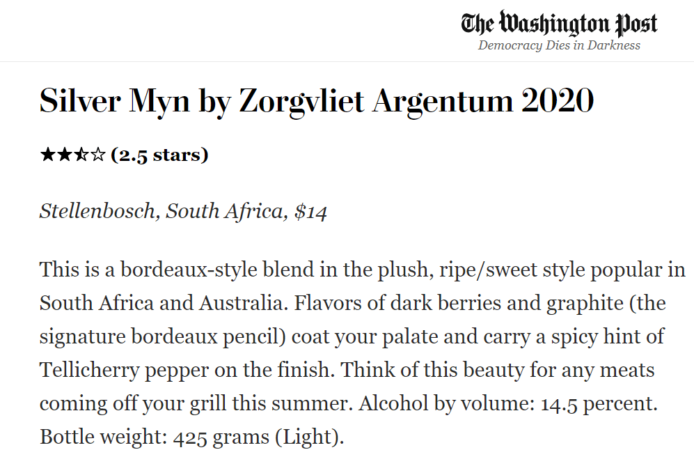 2020 Silver MYn Argentum, Banghoek Valley, South Africa