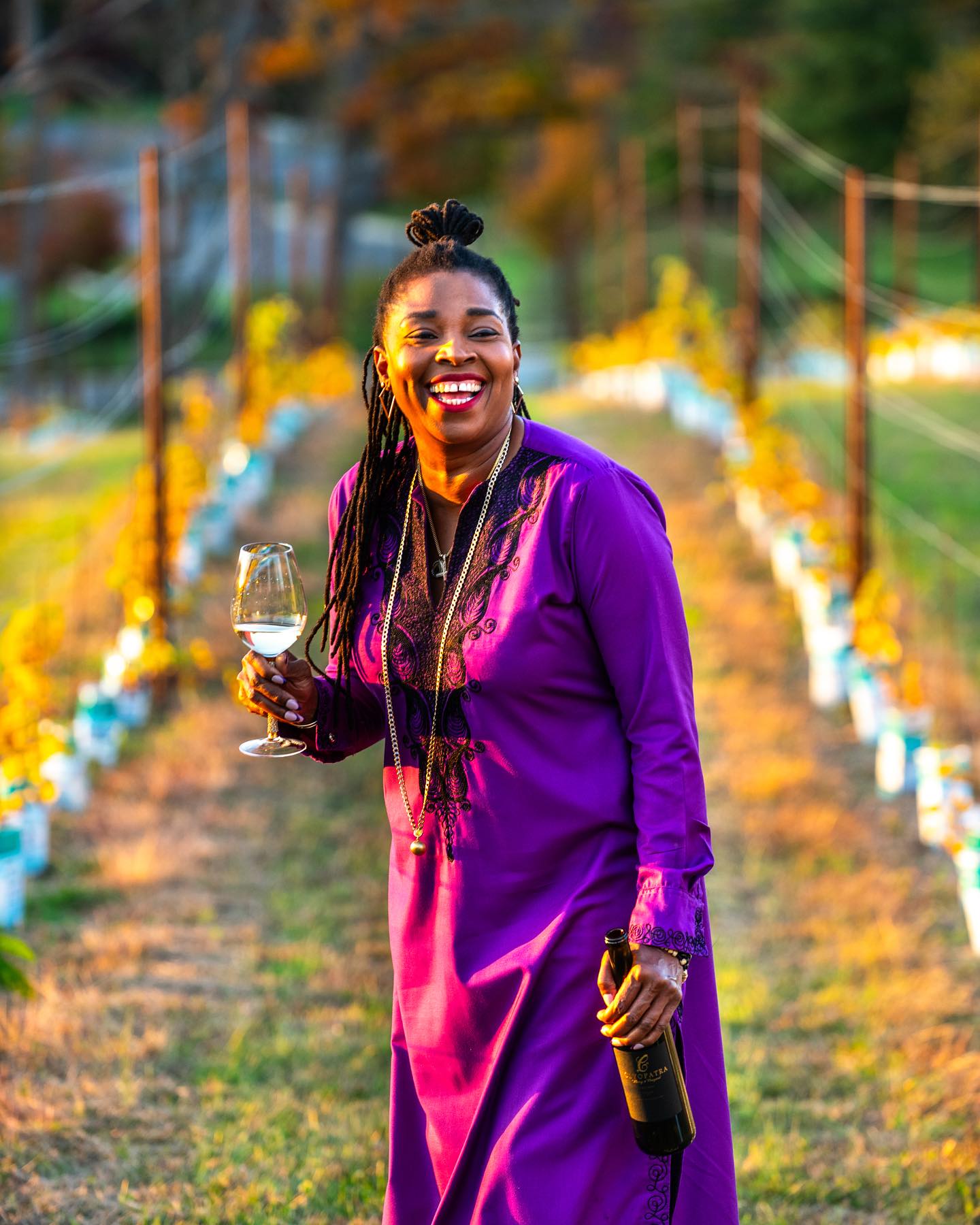 Determined to bring her vision to life, decades later, she planted her vineyard’s first vines, sourced from Maryland’s Eastern Shore, and sources her grapes from that area as well, laying the foundation for the wines she will now produce. Today, she oversees every aspect of the vineyard, winery, and business operations, ensuring that her wines reflect both her African heritage and Maryland’s unique terroir.