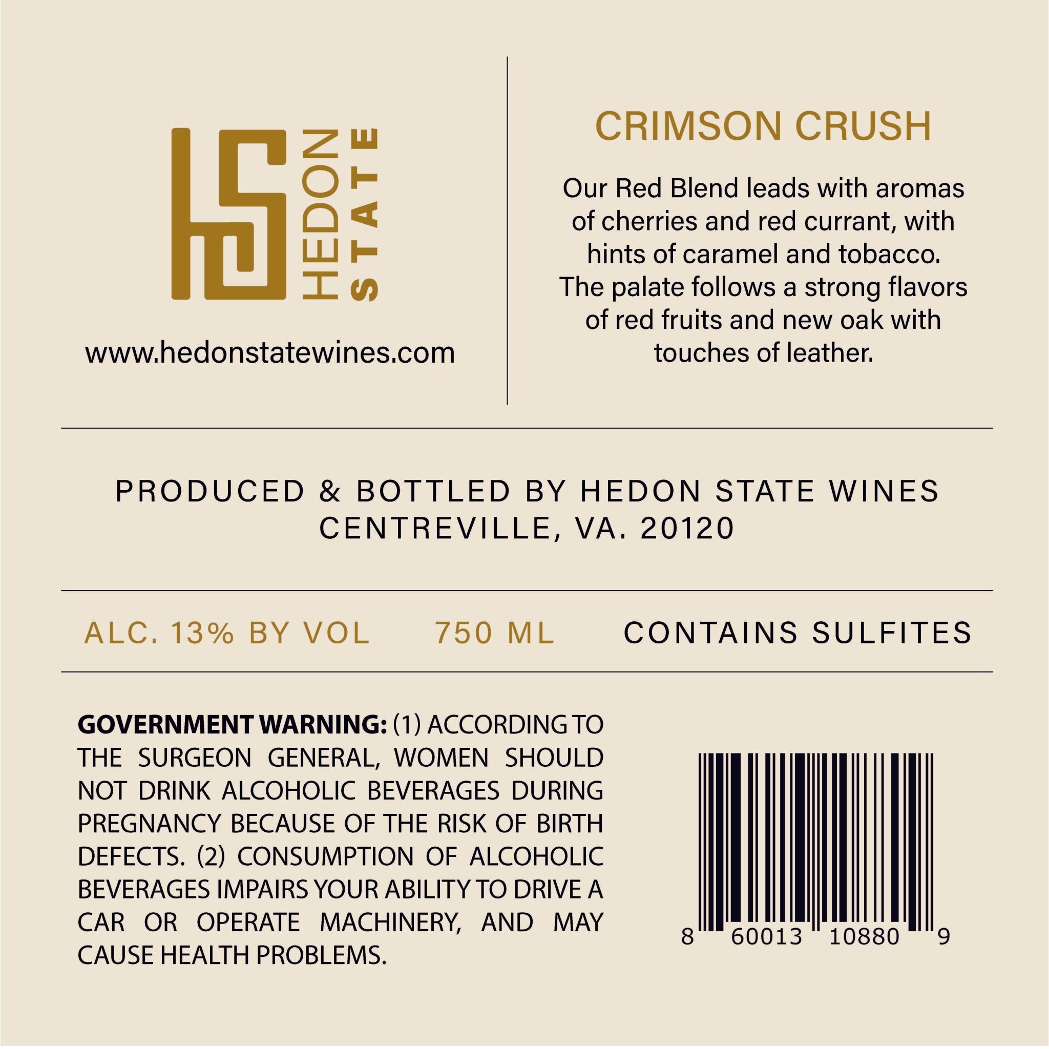 Crimson Crush is a vibrant red blend that encapsulates the dynamic spirit of Virginia's wine country. Crafted from a harmonious mix of Cabernet Sauvignon and Merlot, this wine offers a medium-bodied profile with soft tannins and a fruit-forward character. On the palate, it reveals notes of ripe red berries, subtle spice, and a hint of oak, leading to a smooth, lingering finish.