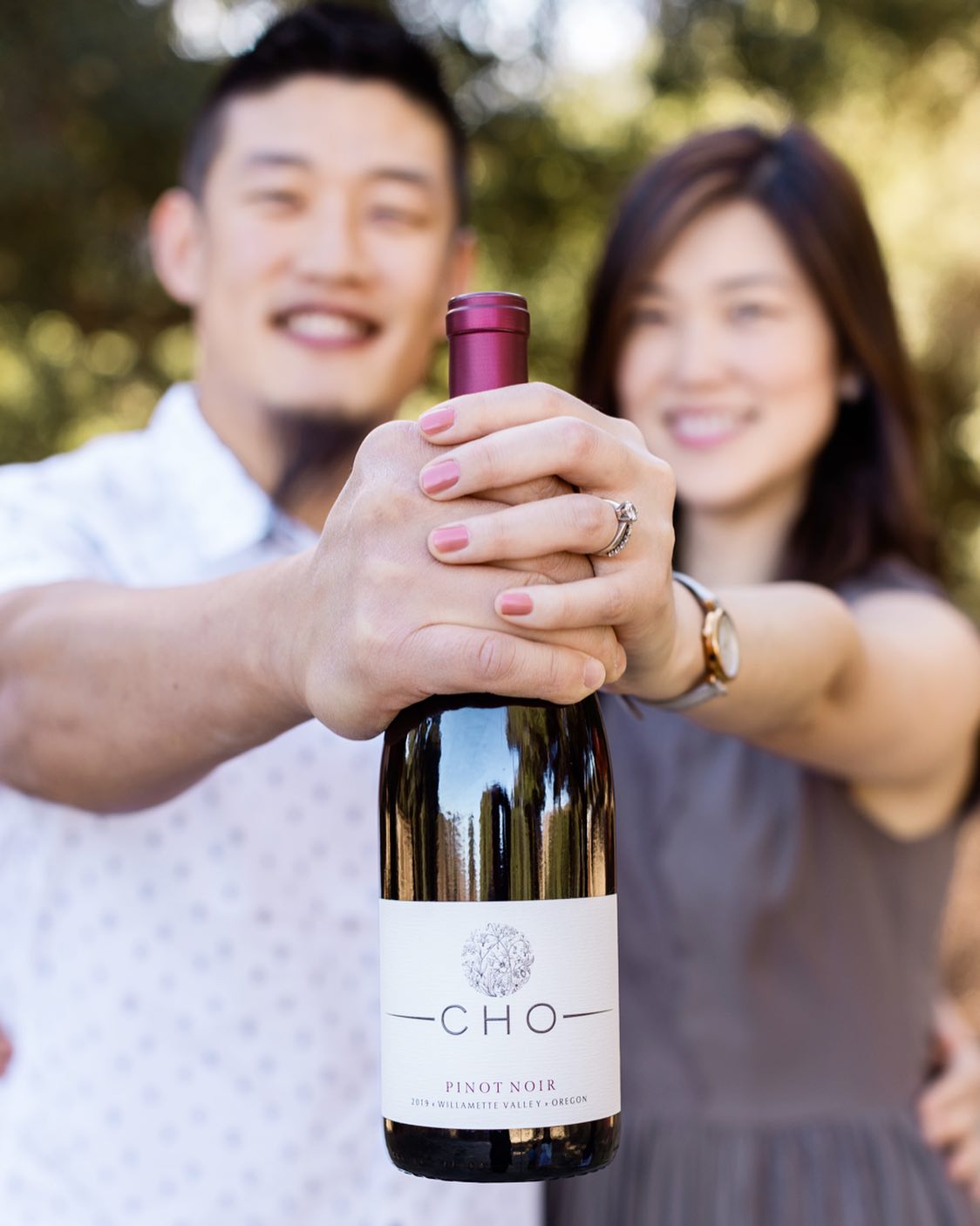 Lois and Dave Cho who founded Cho Wines several years back. Dave Cho, who is Cho Wines founder/winemaker, was introduced to the world of winemaking while performing music at local wineries in southern California and grew his passion for the trade while meditating with monks in Burgundy and sipping through California and beyond. Cho moved his family from California to Oregon to pursue a career in the wine industry and has a degree in Enology & Viticulture from Oregon State University. While in Oregon Cho trained at Argyle Winery and Stoller Family Estate. In 2020, he finally made his own wine label. He is the first Korean-American winemaker in Oregon.