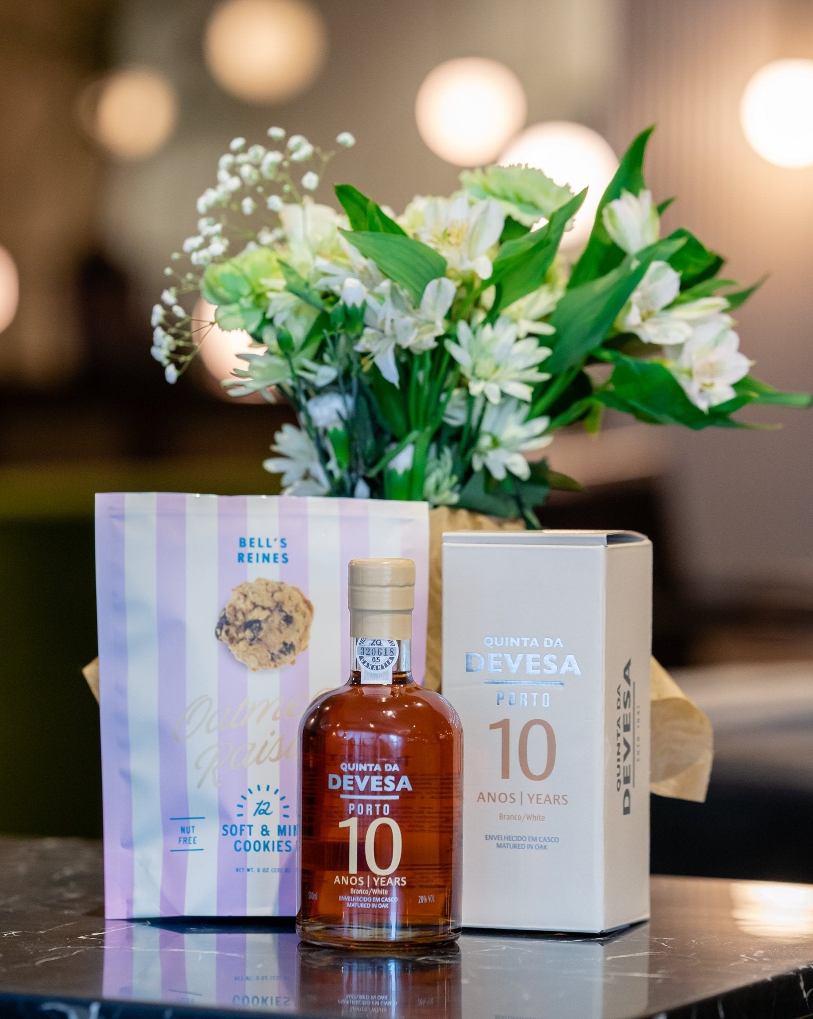 Indulge in the perfect pairing for wine lovers with our Oatmeal Raisin Cookies and 10-Year-Old White Port gift bundle. These homemade oatmeal cookies, packed with plump raisins, offer a delightful blend of chewy and crispy textures.