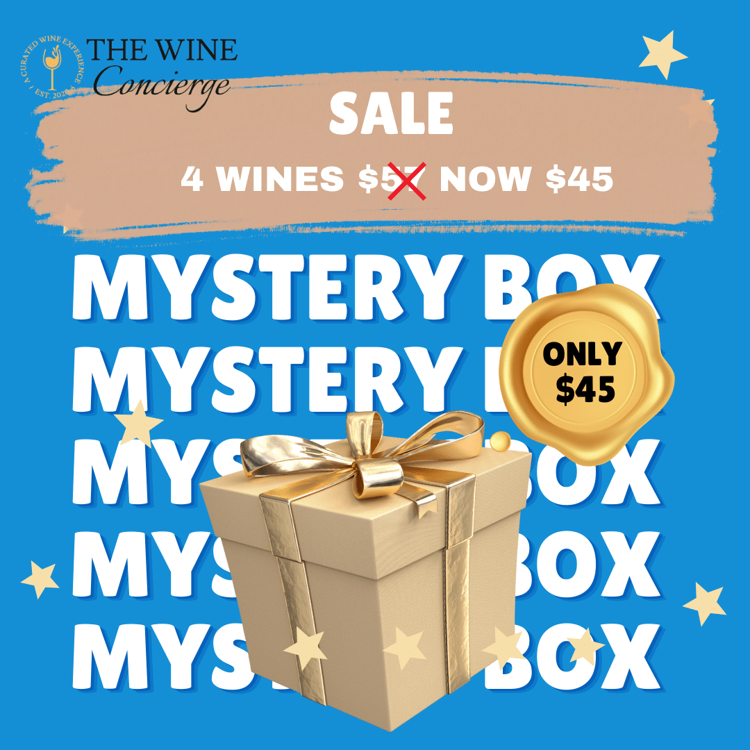 It is a mystery, but the surprise will delight you! You will receive four bottles of wine -4 Bottle Mystery Box -