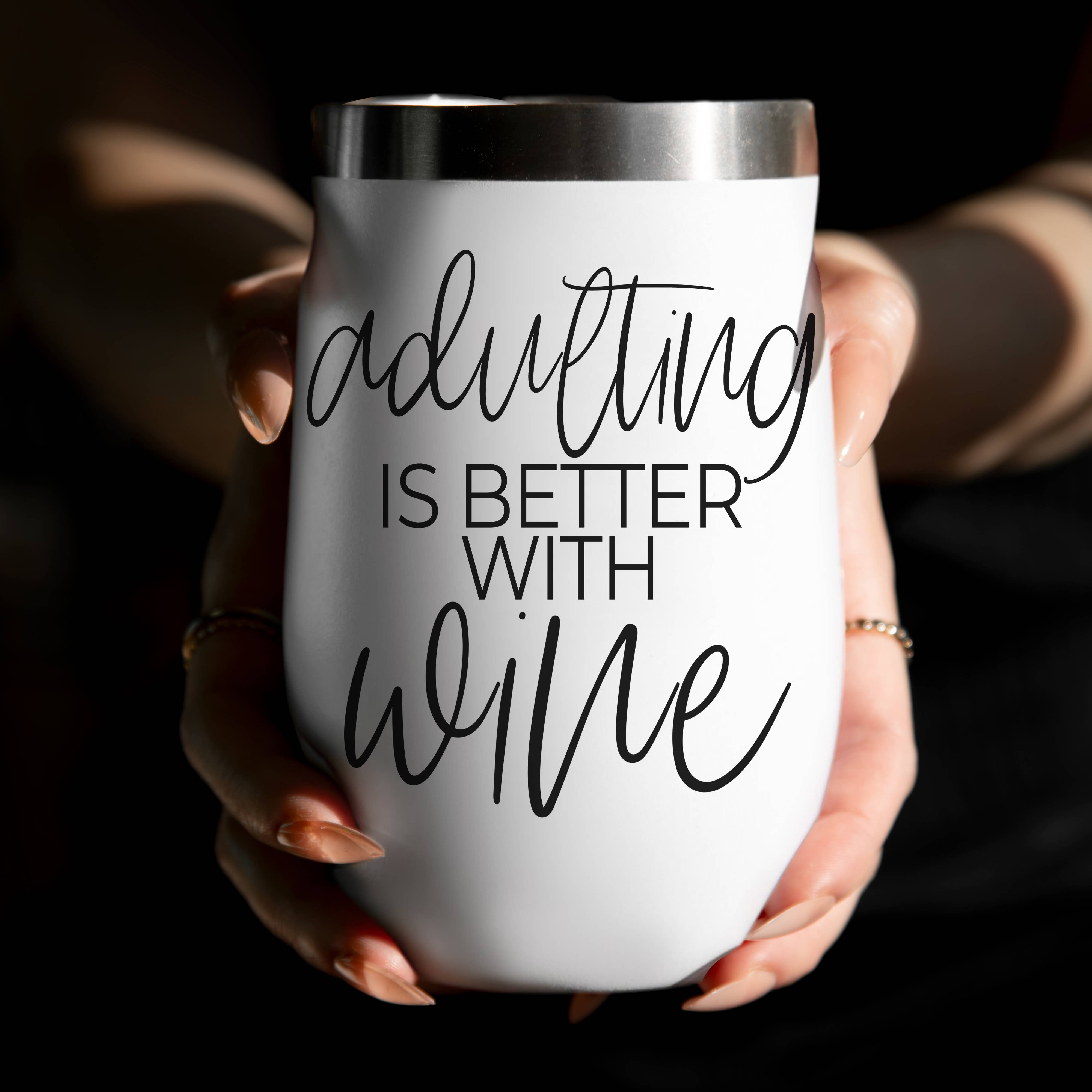 Introducing the Stainless Steel Wine Tumbler with Lid, because Life happens, and sometimes you just need wine to deal with it! Pristine stainless steel, this tumbler is your go-to companion for navigating the unpredictable twists and turns of Life.