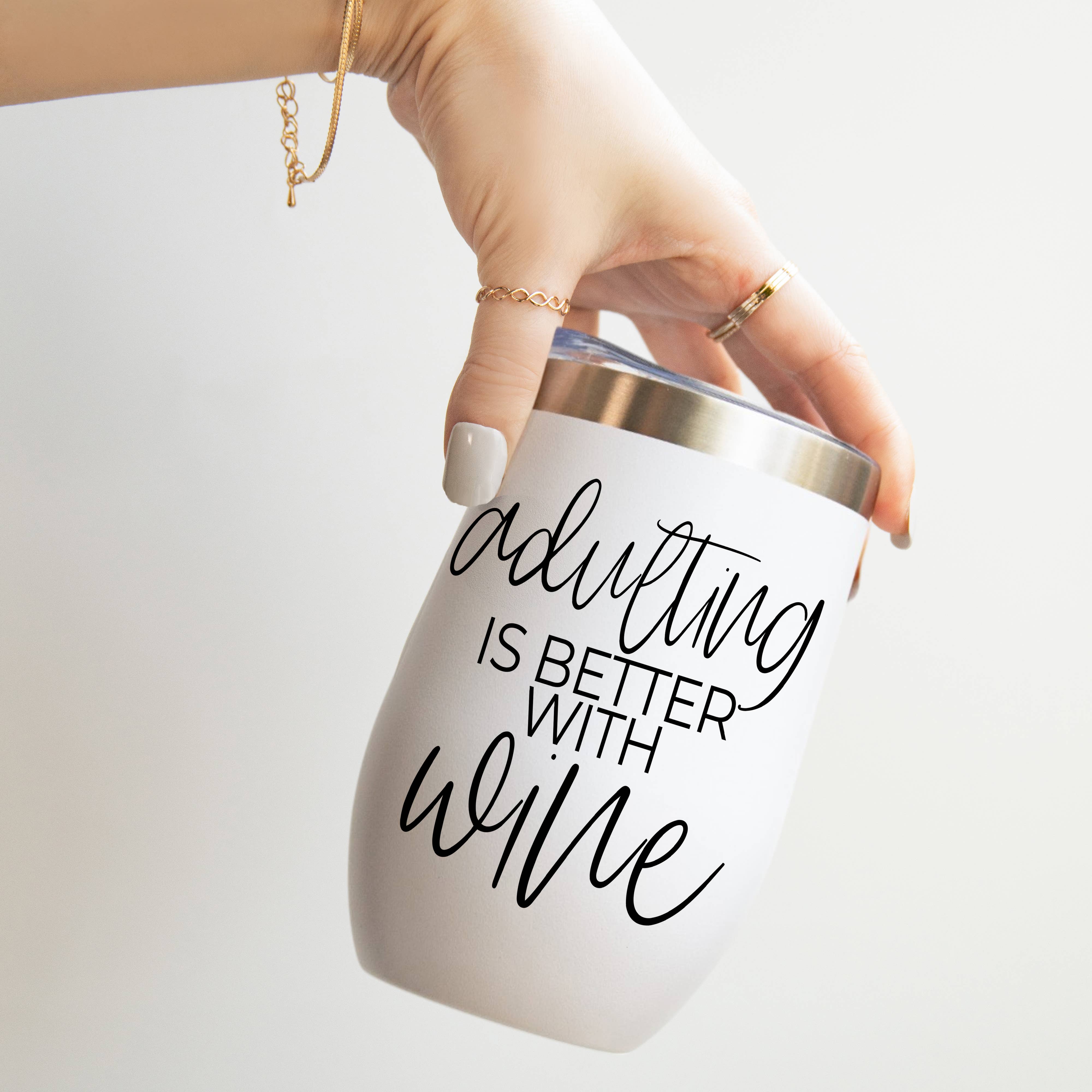 Wine Tumbler White With Lid, WINOS, Funny Gifts for Women
